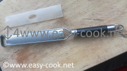 Râpe utilisée pour prélever des zestes d'agrumes râper des légumes, des fruits secs ou du fromage comme le parmesan.