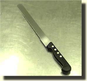 Lame longue et dentée, permet, entre autre, de trancher les pains de mie ou les biscuits de type génoise.