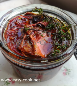 Débarrasser et laisser refroidir avant de les placer dans un bocal et de les recouvrir à hauteur d’huile d’olive ajouter 1 gousse d’ail épluchée et un brin de thym (facultatif).