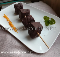 A l’aide d’un pinceau badigeonner les côtes des cubes de guimauve avec le chocolat fondu selon votre convenance. Placer les brochettes en équilibre dans une plaque creuse jusqu’à ce que le chocolat durcisse.
