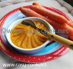 Peler, laver et couper les légumes en morceaux. Les faire cuire environ 20 min dans de l'eau. Les égoutter et les mixer avec le lait infantile reconstitué. Vérifier la température avant de servir.