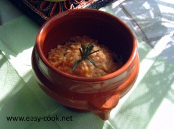 Faire chauffer la cocotte, ajouter les tranches de chorizo coupées en gros dés, faire cuire en remuant, débarrasser sur du papier absorbant. jeter la graisse de cuisson, faire fondre le beurre et ajouter les oeufs battus assaisonnés de sel et poivre. Faire cuire en remuant constamment avec la spatule en bois, ajouter la crème quand les oeufs coagulent pour stopper la cuisson. Terminer la cuisson hors du feu, ajouter le chorizo, le fromage de chèvre émietté et le romarin ciselé. Dresser et servir aussitôt.