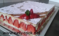 Décorer avec des fraises roulées dans un peu de sucre cristallisé et d'autres finement émincées.