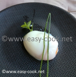 A l’aide d’une aiguille piquer l’œuf cru du côté bombé (ou se situe une petite poche d’air), ce qui permet d’éviter que l’œuf n’éclate à pendant la cuisson (cette technique est également valable pour faire les œufs mollets et durs)