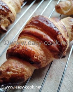 Préchauffer le four à 180°C en chaleur tournante , passer de nouveau de la dorure et mettre les croissants à cuire 15 à 20 ‘ .