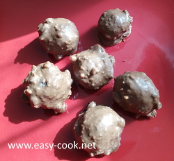 Si le mélange chosolat noisettes est trop sec, ajouter 1/2 cuiller à café de lait concentré sucré. Pour décoller les rochers de l’assiette une fois froids, chauffer une tasse d’eau au micro ondes et plongez y une cuillère à soupe quelques secondes dedans. Recommencer l’opération.