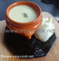 Chauffer l’huile dans une casserole à pression, y faire revenir les graines de fenouil et les légumes pendant quelques instants. Couvrir de bouillon de légumes, assaisonner selon le goût et faire cuire pendant une demi-heure (ou une heure dans une casserole classique). Passer le potage au chinois, pour éliminer les fils du fenouil. Au moment de servir, ajouter le lait de soja.