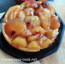 Laisser un peu tiédir à la sortie du four avant de retourner cette tarte sur un plat de service.