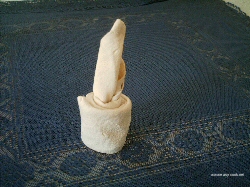 Ramener la pointe inférieure de la serviette vers le haut, de façon à obtenir un triangle. |