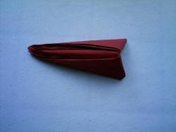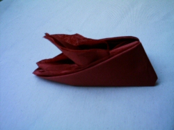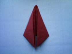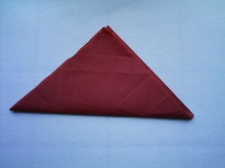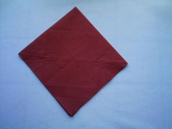 Plier la serviette en 4 pour former un carré. La placer en losange devant soi, plis ouverts vers le bas. |
