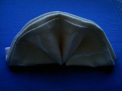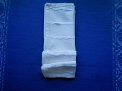 Plier la serviette en deux pour obtenir un rectangle (largeur vers le bas, plis ouverts vers la droite). |