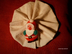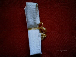 Une serviette, ruban, ficelle dorée, raphia ou père noêl