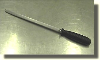 De différentes tailles, mais généralement d'environ 45 cms. Utilisé pour rectifier le "fil" (tranchant) d'un couteau. Exige un certain savoir faire au niveau du geste technique pour se révéler efficace.